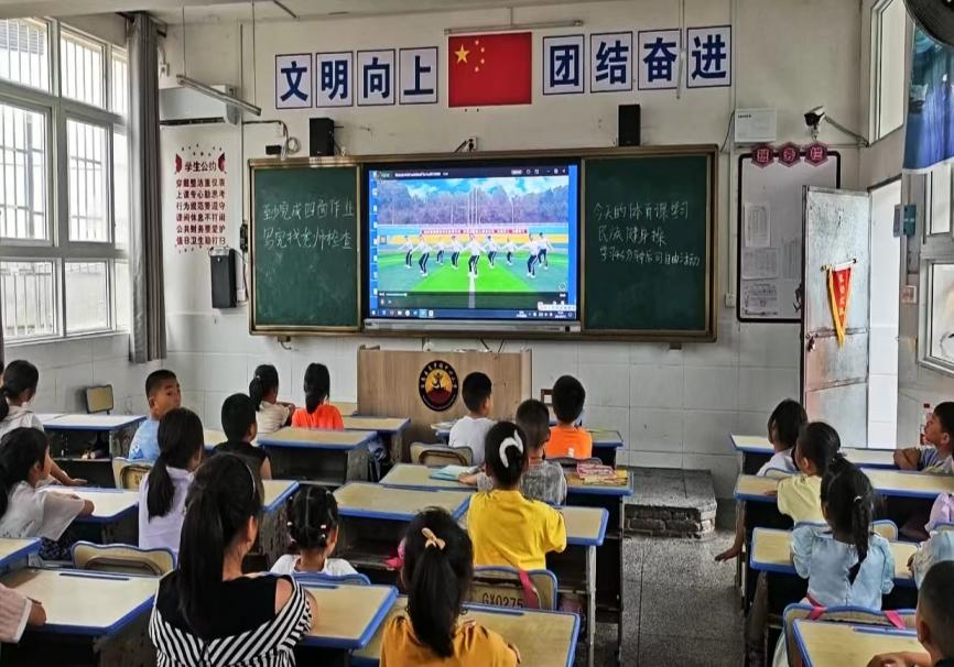 同学们在教室学习《民族健身操》