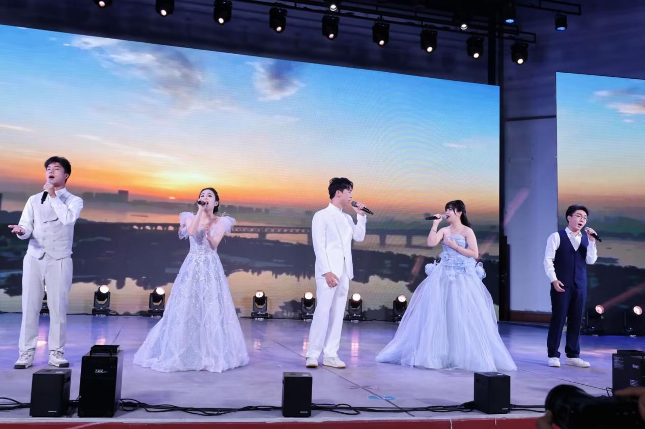 晚会在音乐舞蹈学院带来的开场歌舞《我们的新时代》中拉开帷幕。青春的热浪在舞台间流转,活力的舞蹈在聚光灯下展现着青春的恣意,舞者们通过流畅的动作线条、节奏感的步伐和细腻的表情变化,将舞蹈的情感与内涵传递得淋漓尽致。