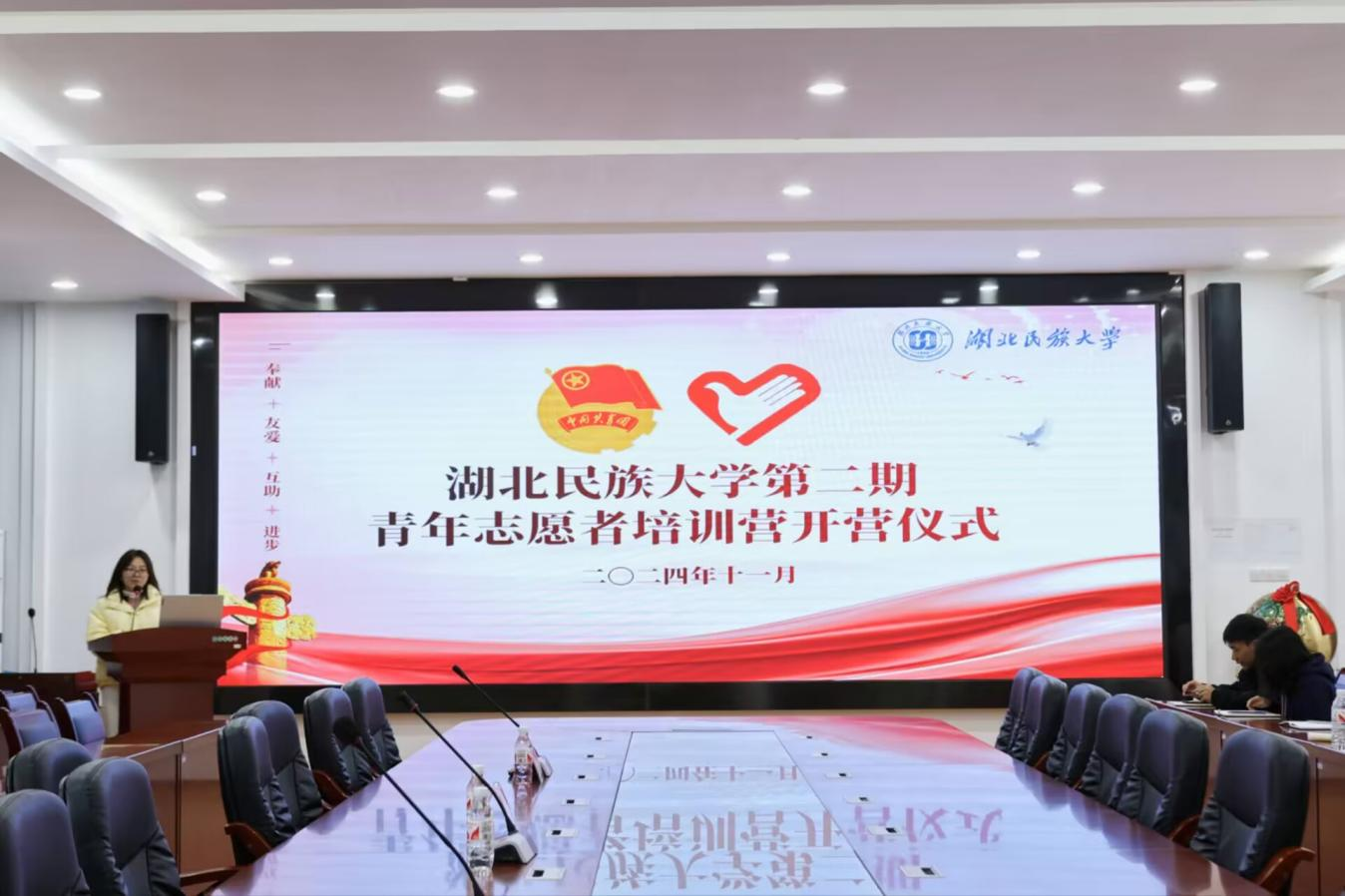 11月24日,永利官网第二期“青年志愿者”培训营在经济与管理学院附303会议室举行。恩施巴硒客餐饮管理有限公司总经理、恩施市义工协会副会长、全国家庭教育指导师、国家心理健康指导师、恩施公益小天使发起人汪娜,现任恩施州五彩社会工作服务中心副理事长、恩施州人大代表及其常委会委员、湖北省十四届青年委员、中级社会工作师吴欣,校团委社会实践与志愿服务部主任张典应邀出席,校青协、院青协、公益类社团志愿者代表共70人参与会议。