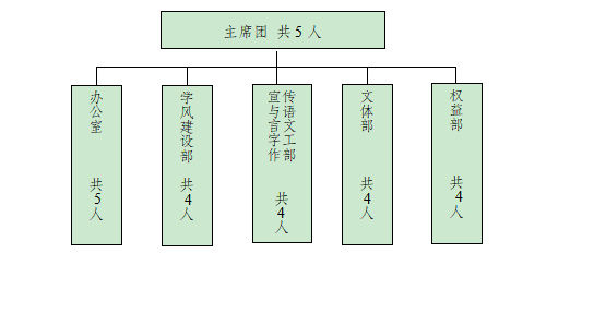 第十七条 学生会设办公室、文体部、学风建设部、宣传与语言文字工作部、权益部五个工作部门,在主席团指导下开展工作。各部门工作人员应由学院(部) 团组织推荐,经学生工作部和校团委审核后确定。