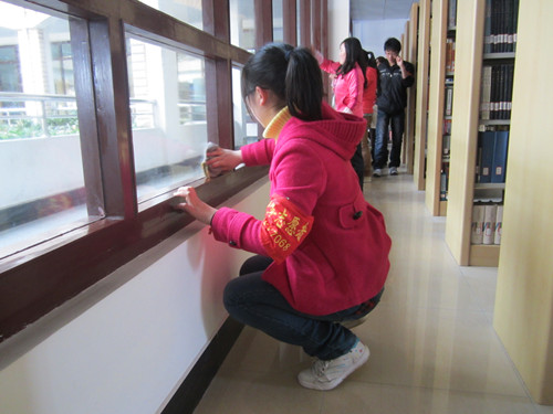 此活动在谨遵图书馆管理制度,用心呵护每一本书籍的理念中展开。经过图书管理员指导,青年志愿者们先后完成了打水、扫地、擦窗、撕标签、除尘、整理书架等一系列工作。虽然这些都很简单,但每位青年志愿者都认真地做着。在30余名青年志愿者2个半小时的共同努力下,图书馆焕然一新。此后,青年志愿者还将在永利官网各个地方向同学们发放如何正确利用图书馆的宣传单。