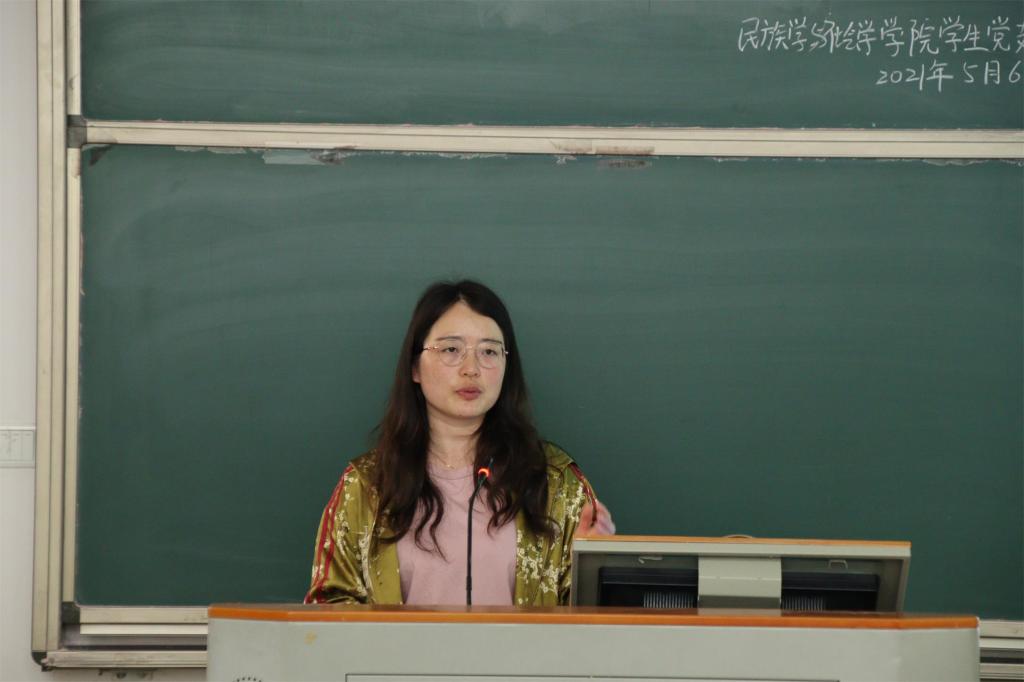 随后,学生党员郭玉以“苦难中的辉煌——伟大的长征精神”为主题展开授课。她以一颗石头为线索,将在场人员带回长征时代,一起回顾长征的艰苦岁月。她号召在场人员胸怀大局,担当时代责任,做一名新时代的好青年。