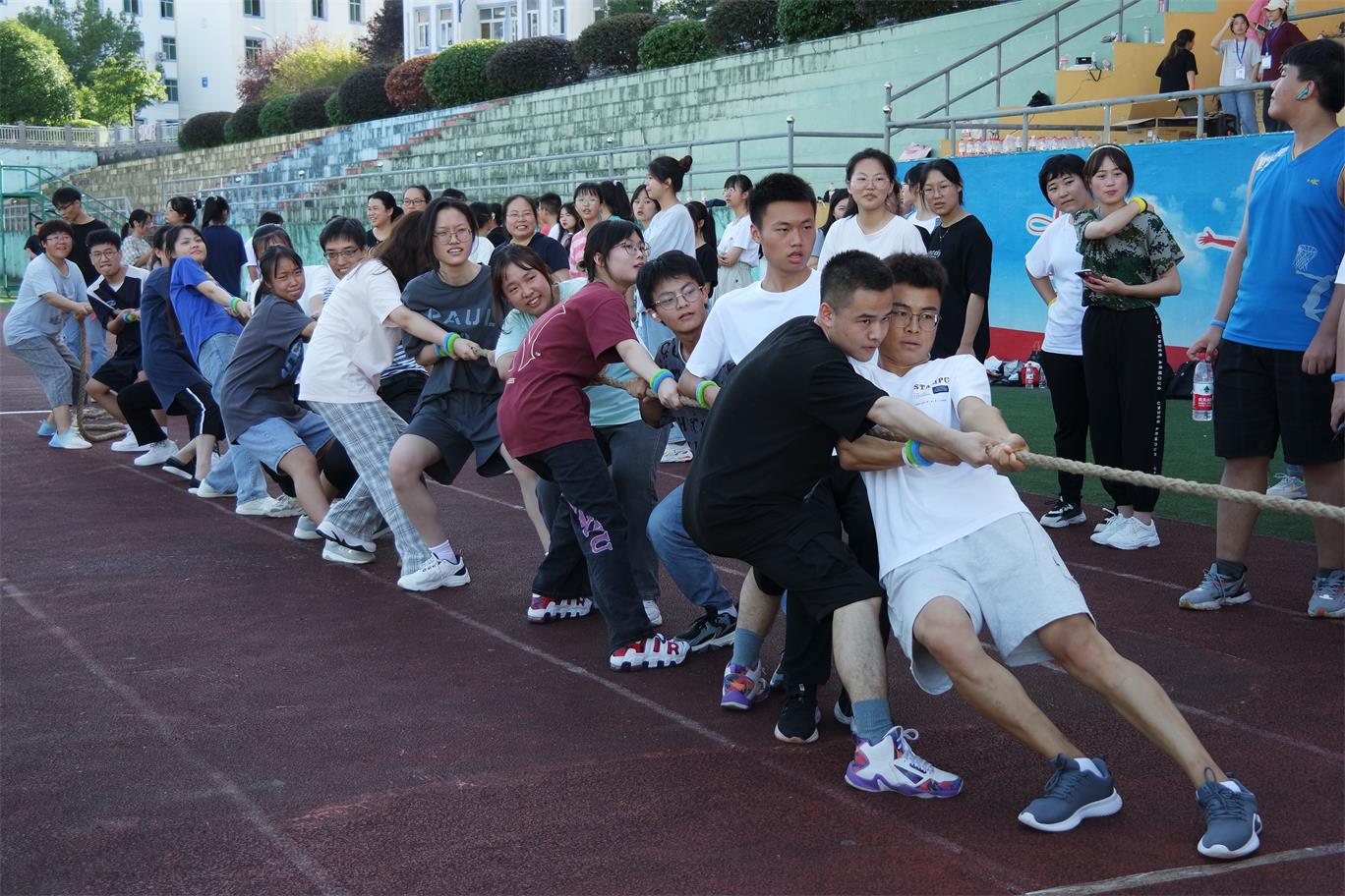 本次运动会在“击鼓传花”小游戏中拉开帷幕,“幸运者”进行才艺演示,迅速调动新生参与比赛的激情。比赛正式开始,在“拔河”环节中,每支队伍合理安排参赛人员,教师也充分展现他们的激情,在比赛中拼尽全力,在比赛场外欢呼加油。同时,推动活动气氛进入高潮阶段,在“旱地龙舟”比赛环节中,所有参赛人员间相互合作,抬起龙舟争分夺秒向前冲,充分展现大学生青春活力,也增进学生之间团队合作意识。比赛结束后,大一学生卜景峰说道:“对于刚进大学的我们来说,此次活动的举办增进与同学之间的了解,同时也加深了我们对老师的了解,这次活动对我来说意义非凡。”