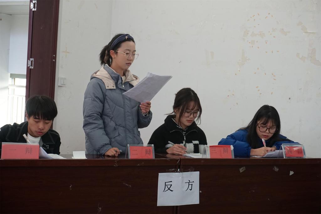 本网讯(见习记者 谌海容 陈慧超/文 见习记者 卢子畅/图)为开拓大一学生创新思维,提高其论辩水平,11月19日,我院于修远楼5B403学术报告厅举办第六届“迎新杯”辩论赛决赛,我院学生科科长张冰老师,学科建设科副科长赵慧翔老师,廖正丽博士、杜鹏博士受邀出席本次比赛并担任评委,我院全体大一新生及各二级学院代表参加此次活动。