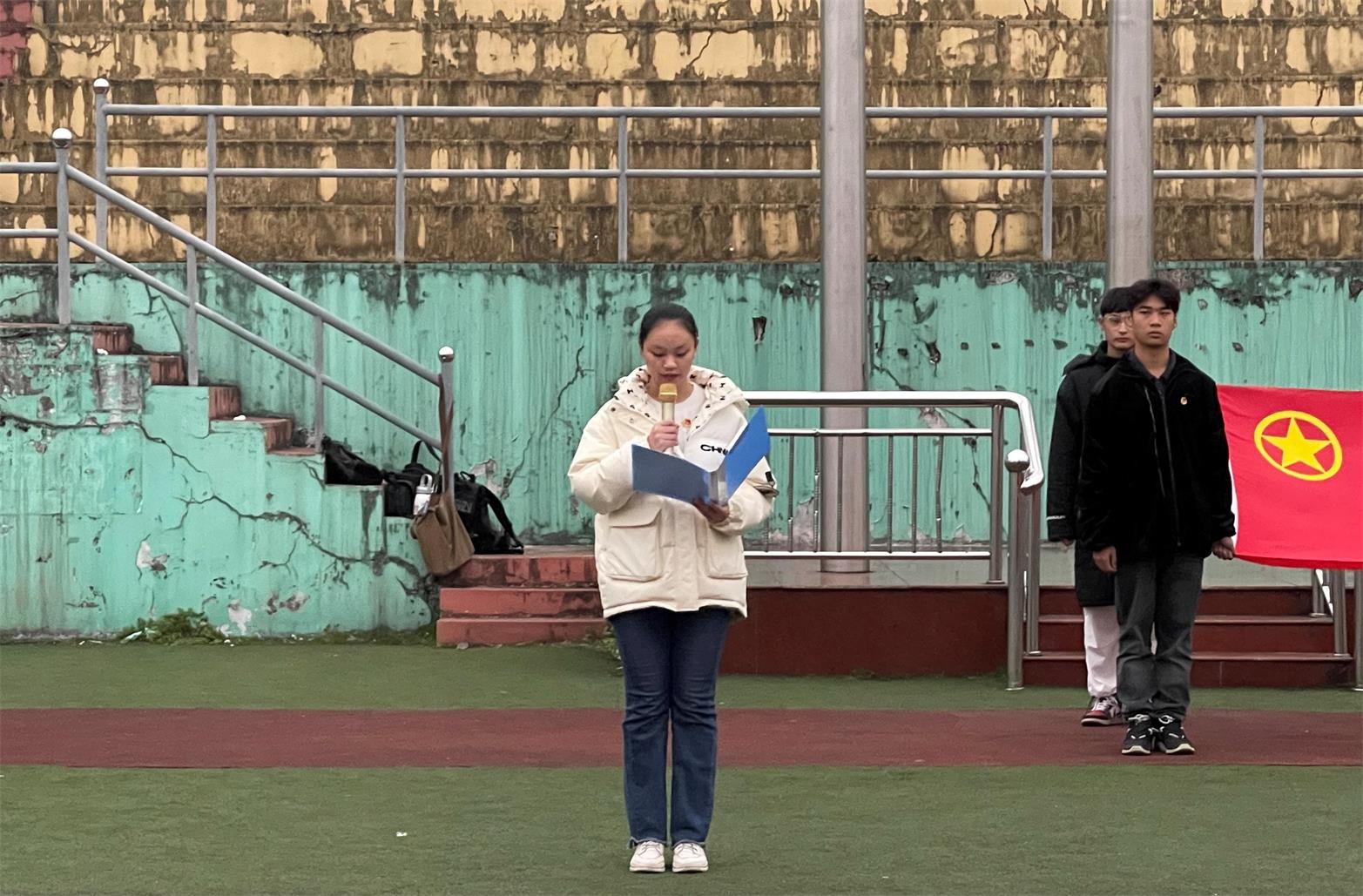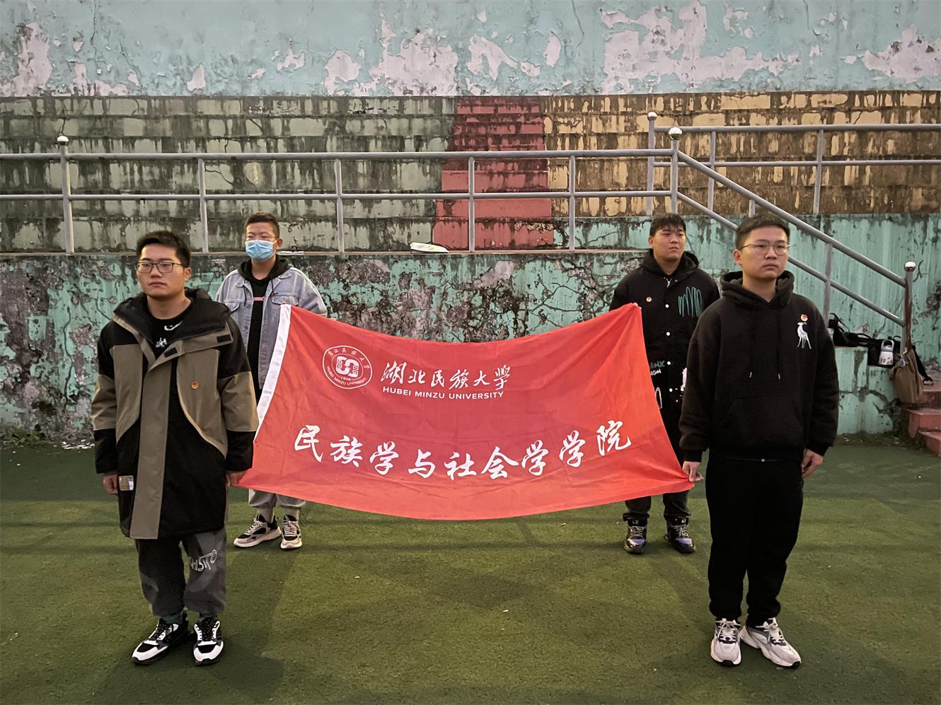 本网讯(记者 陈慧超 谌海容/文 董金科/图)为提高学生的思想政治觉悟,增强历史责任感和使命感,11月29日,我院联合美术与设计学院在民族体育场举办“国旗下的青春民大”特别主题团日活动。我院团总支书记熊霞、美术与设计学院团总支书记彭阳受邀出席此次活动,两院全体大一、大二学生参与本次活动。