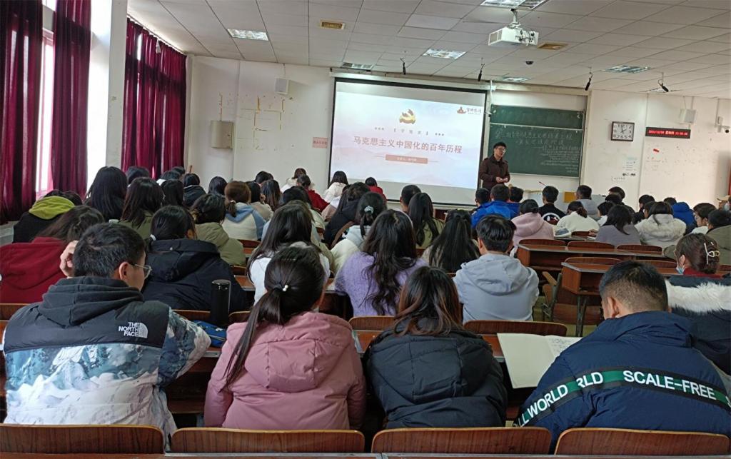 本网讯(记者 付欣淼/文 陈舒琦/图)为提升马克思主义对学生的影响力,确立青马工程学员正确思想定位,12月9日,我院联合数学与统计学院、生物科学与技术学院、体育学院、法学院、教师教育学院在德智楼9A209教室顺利开展第二期“青年马克思主义者培养工程”培训班第五次授课。体育学院团总支书记张弋明担任主讲人,我院及其他五院全体青马工程学员参加本次活动。