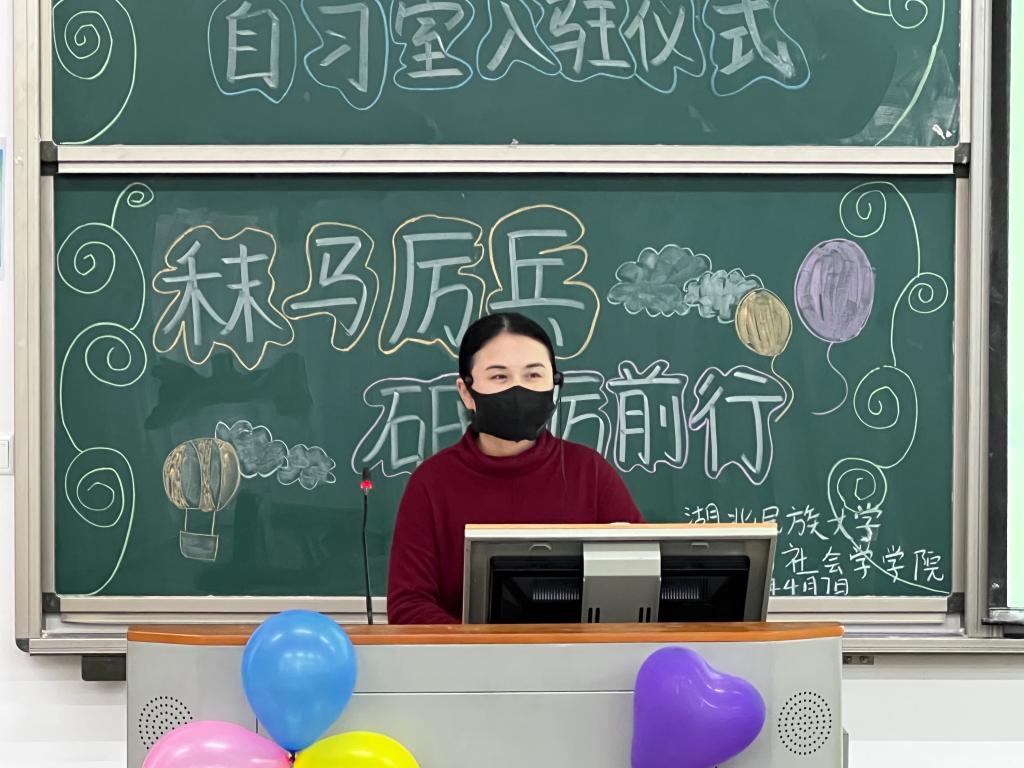本网讯(见习记者 谌海容 付欣淼/文 卢子畅 陈诺/图)为提高我院学生对考研知识更深层次的了解,明确考研目标和方向,4月7日,我院团总支宣传部和学生会宣传与语言工作部于修远楼5A505教室共同举办以“秣马厉兵,砥砺前行”为主题的考研交流会暨“尚岸”自习室入驻仪式。我院党总支副书记杨洪林老师,周书刚老师、汪黎老师受邀出席本次活动,熊霞老师主持召开会议,我院部分学生参加此次活动。