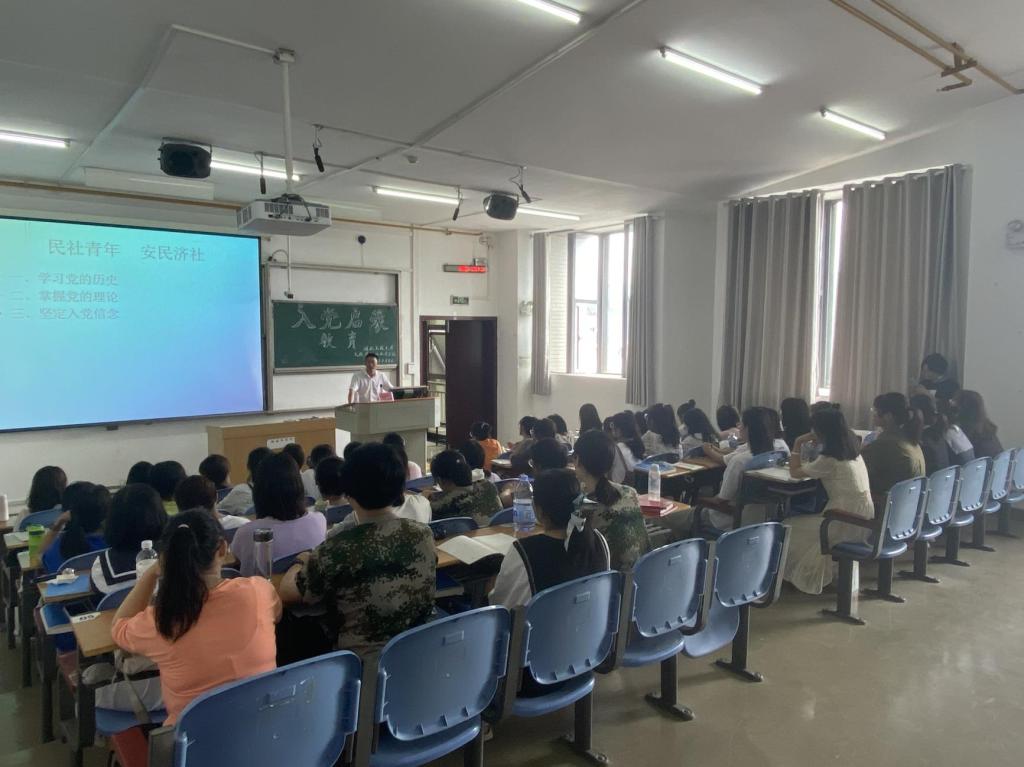 本网讯(记者 张梦婷/文 戴启栋梁/图)为增强新生对党规党史了解,高树思想旗帜,鼓励新生积极向党组织靠拢,9月6日下午,我院团总支组织纪检部在修远楼5A501教室开展以“新时代,新青年,跟党走,建新功”为主题的入党启蒙教育讲座。我院党总支书记曹召胜担任主讲人,全体大一新生参与聆听。