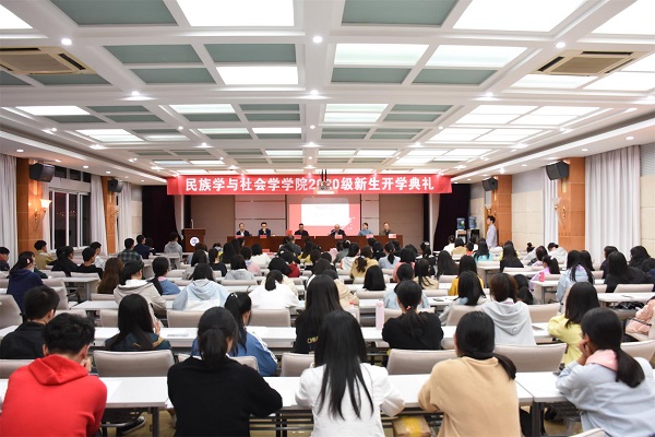活动在全体起立奏唱国歌中拉开序幕。随后,谭志满院长致辞新生,他对我院2020级新生表示欢迎,希望新生们能树立崇高的品德,有理想有担当,练就过硬本领,利用社会学专业知识,在时代的洪流中,勇担民社青年安民济社的使命,为实现中华民族伟大复兴绘制自己宏伟的画卷。紧接着,教师代表胡兆义发言,他讲述自身对社会学的理解,并表示新生应转变学习和生活方式,志存高远而积极向上。然后,优秀学生代表刘圆媛从“学校”、“学院”、“自己”三个方面对新生提出建议,希望新生在大学中发展好自己。新生代表高正清同学发言,他表示作为民社新生,将会以积极的态度和更高的热情投入到今后的学习与生活中。