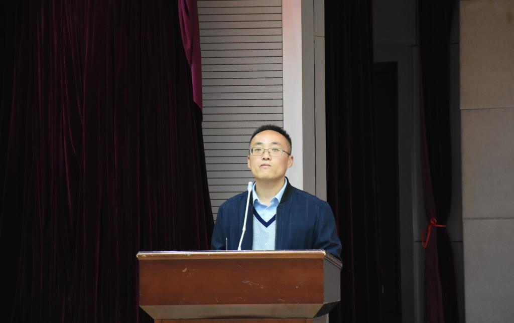 在曹召胜书记宣读“一生一导师,一师一面旗”文件后,全体新生对教师行“拜师礼”。最后,曹召胜书记鼓励全体新生阅读经典并积极参加社会实践,为社会、国家做贡献。