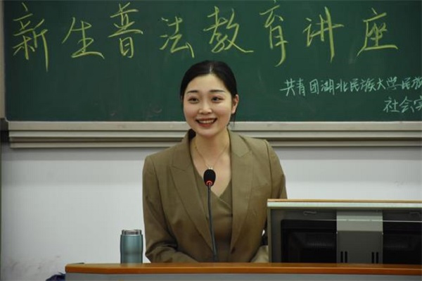 本网讯(记者 吴睿/文 武依帆/图)为提高我院新生法律素养,增强其法律意识,9月20日下午,我院团总支社会实践与志愿者工作部在修远楼5A502教室开展新生普法教育讲座。湖北新理念律师事务所专职律师韩艳担任此次讲座主讲人,我院全体大一学生参与此次讲座。