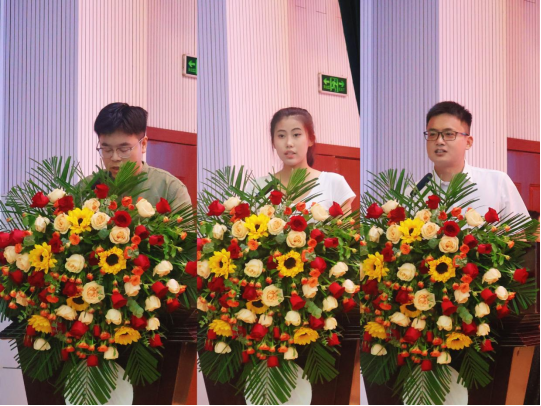 新生代表田千册引用习近平总书记对当代青年的寄语,希望能携手同学们以大学为广阔舞台,树立规范意识,恪守学校准则,努力学习,拓宽视野,提升自我,真正成为“怀抱梦想又脚踏实地,敢作敢为又善作善成”的民社青年。
