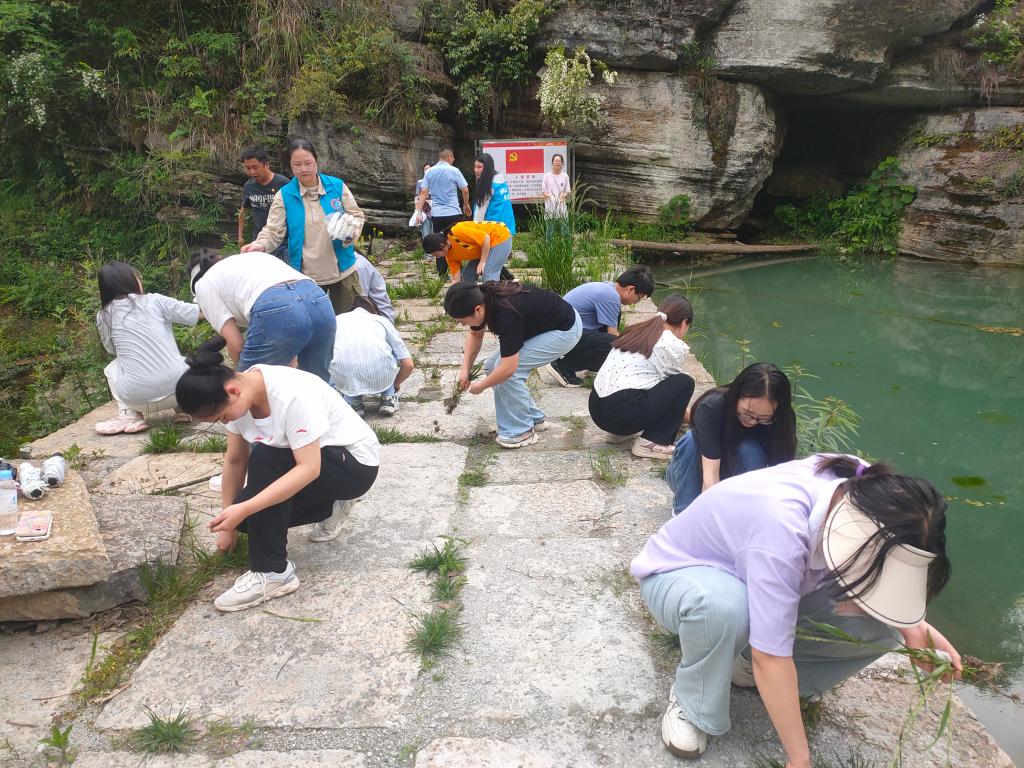 在特色实践环节,全体党员共同参与“转转工”实践活动,助力共同缔造,重走老英雄当年翻山越岭、寻找水源的山路,参观张富清精神传承教育点——麻坑水库和半山湾水渠,并在此举办了预备党员宣誓仪式。全体党员、学生、社工、村“两委”共同为张富清红色线路进行环境维护。