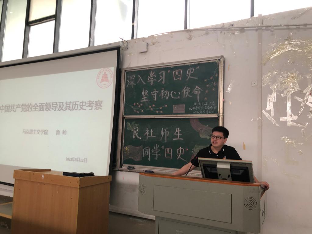 (本网讯 张雯/文 张冰/图)为进一步深化巩固党史学习教育成果和落实永利官网开展“四史”学习教育的实施方案,5月12日上午,我院邀请了3044am永利集团3044noc“四史”学习教育宣讲团鲁帅博士开展宣讲活动,我院协同创新主任、教工党支部书记胡兆义担任主持人,全体教职工和部分研究生和本科生参加此次活动。