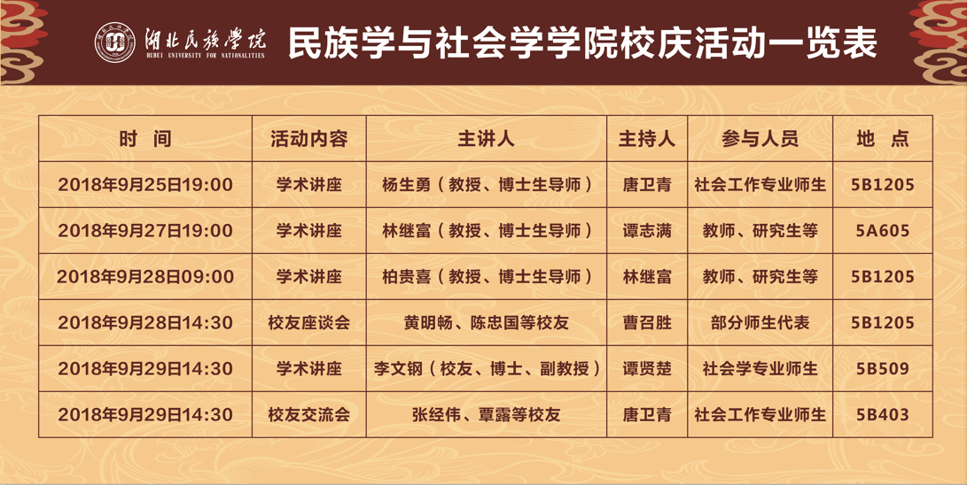 民族学与社会学学院校庆活动一览表