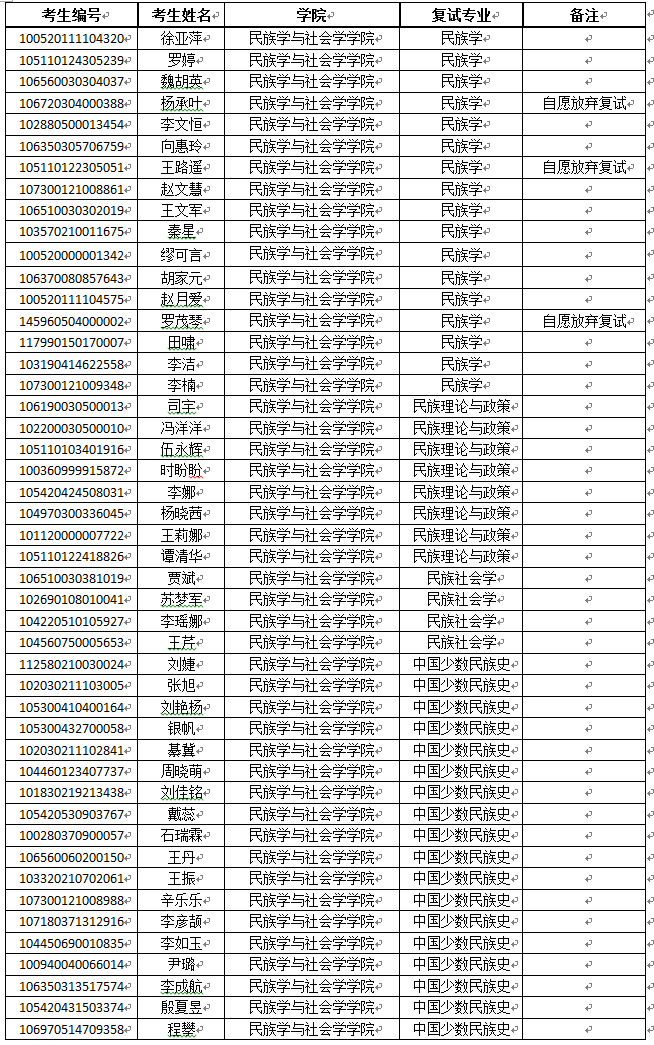 3044am永利集团3044noc民族学与社会学学院2020年硕士研究生招生复试名单(调剂生)