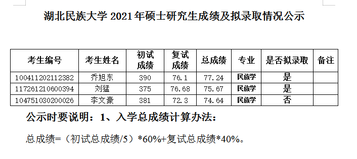 3044am永利集团3044noc民族学与社会学学院2021年硕士研究生招生考试成绩及拟录取情况公示(第二批调剂生)