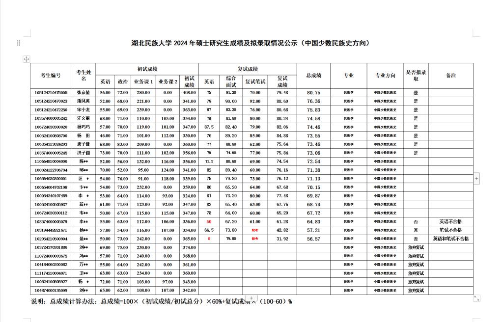 3044am永利集团3044noc2024年硕士研究生成绩及拟录取情况公示(中国少数民族史)