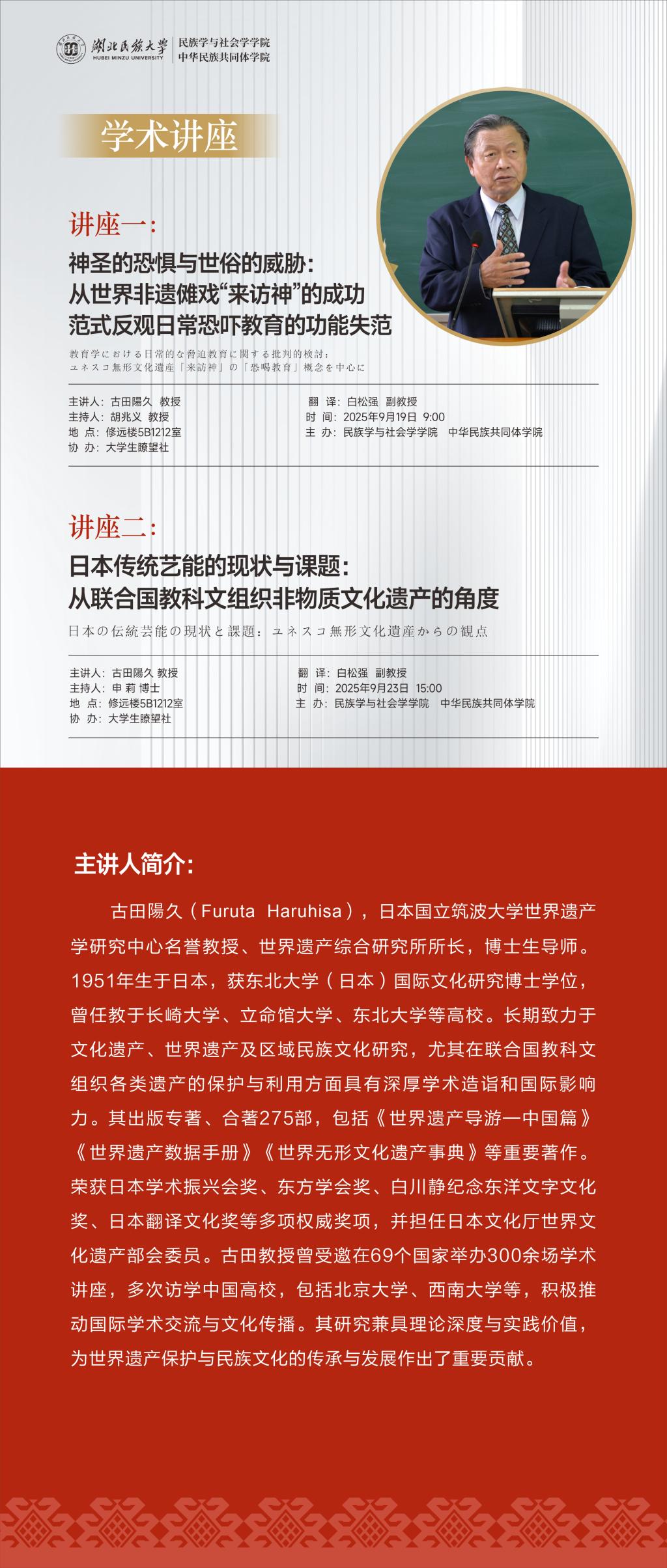 9月19日上午与9月23日下午讲座预告