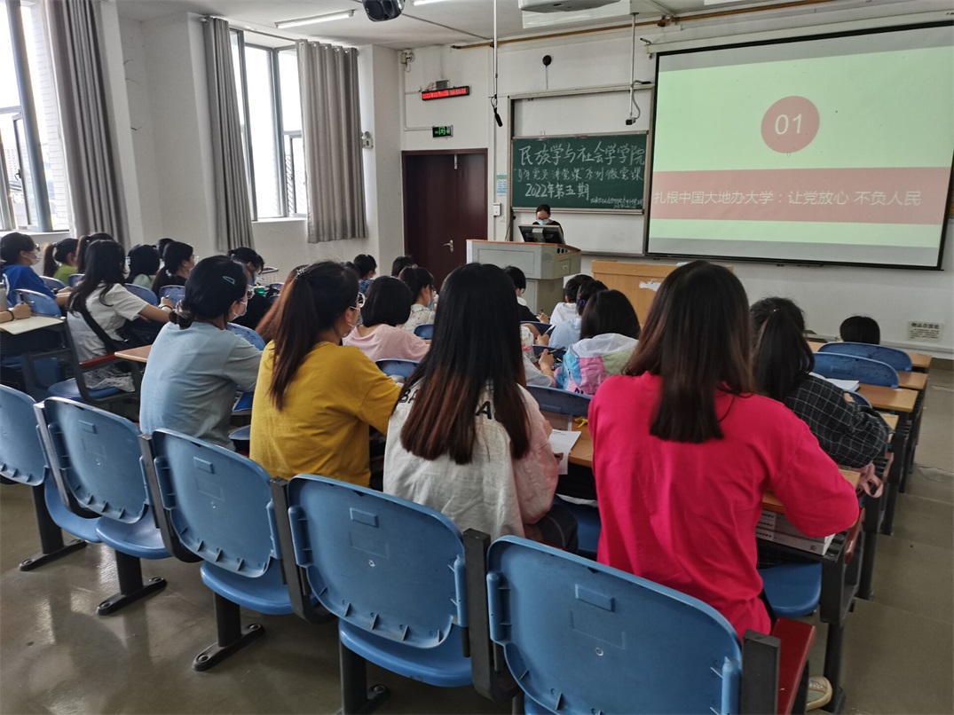 本网讯(记者 谌海容/文 陈舒琦/图)5月12日,我院本科生党支部于修远楼5A502教室开展2022年度“青年党员讲党课”系列微党课第五期。我院本科生党支部书记张冰、教师党员潘华云受邀出席此次活动,学院全体本科生党员及本科生入党积极分子参与聆听。