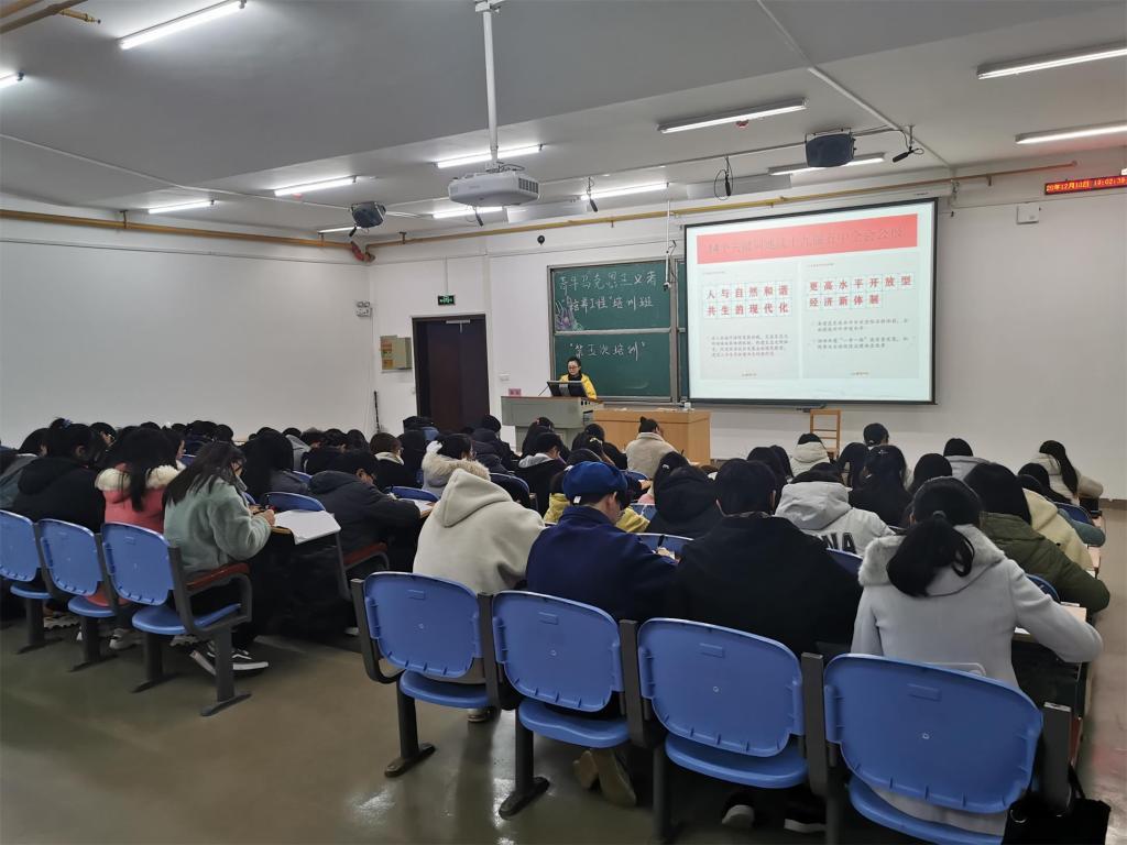 本网讯(见习记者 欧阳洁 郭杰宏/文 余喆 肖欣 杨美琳/图) 为让大学生进一步加强政治修养,增强政治信念,12月10日晚,我院团总支组织纪检部联合美术与设计学院团总支组织纪检部于5A-202学术报告厅举办第一期青年马克思主义者培训班第五次授课活动。永利官网党委宣传部副部长万力受邀出席并担任本次活动主讲人,第一期青年马克思主义者培训班全体学员参与聆听。