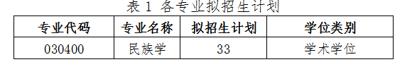 民族学与社会学学院各专业拟招生计划见表1。