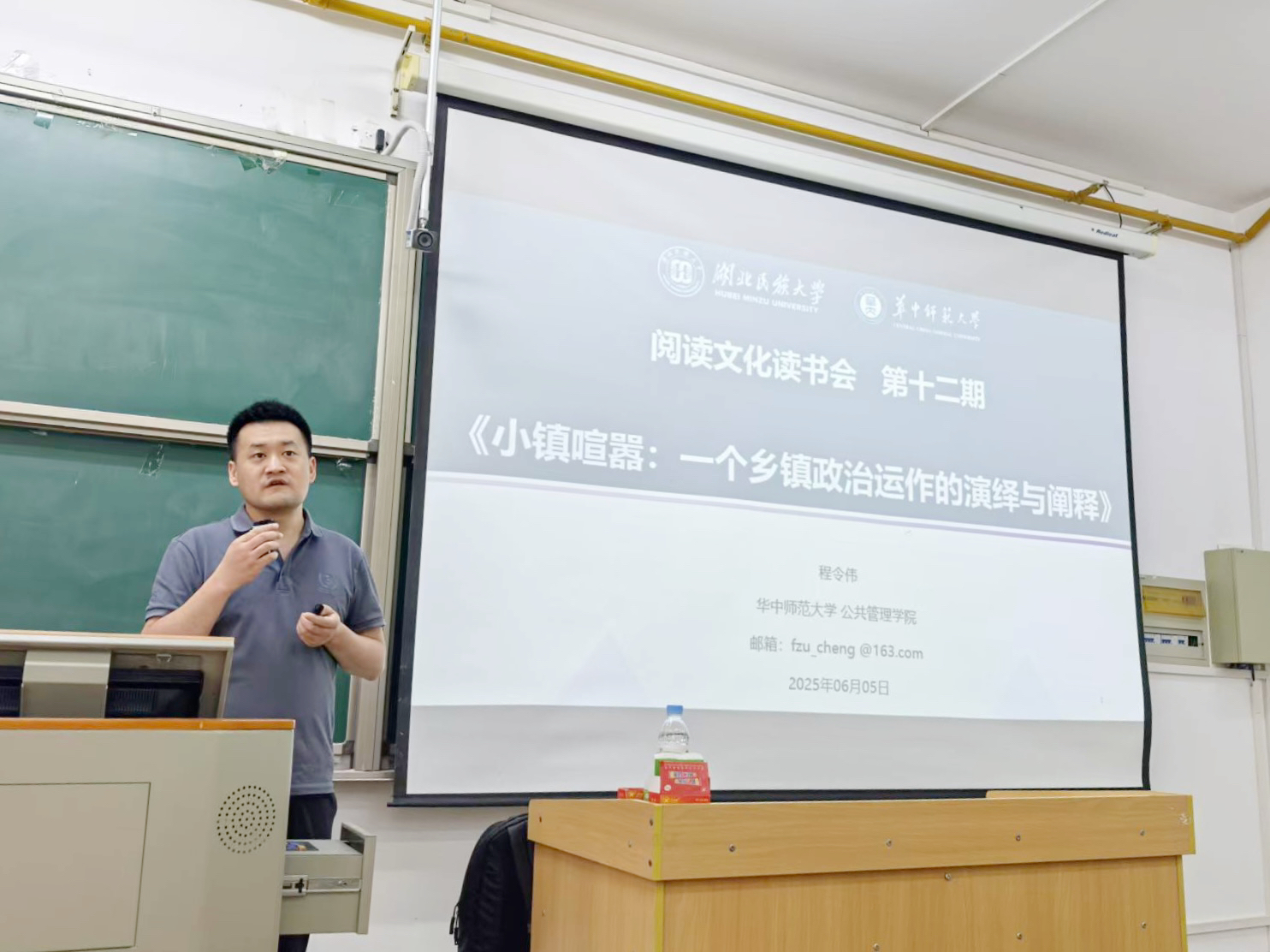 程令伟博士从“如何阅读一本书籍”切入,引导听众掌握学术阅读的方法与视角。随后,他对《小镇喧嚣》的研究背景与核心内容进行了系统介绍,指出该书通过田野调查揭示了乡镇政权在多重压力下的真实运作机制。在典型案例分析环节,程博士聚焦“迎检”“农业税征收”“征地开发”“产业调整”四个场景,生动阐释了基层政府如何在政策执行、利益博弈与民众互动中寻找平衡。最后,他总结了乡镇政治运作的核心逻辑,强调“权责不对等”“压力型体制”与“非正式规则”对基层治理的深远影响。