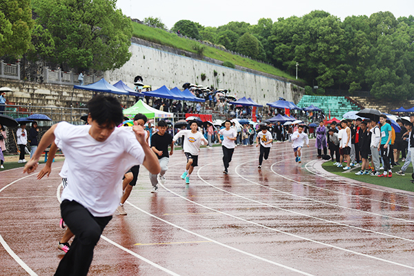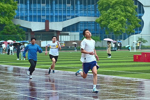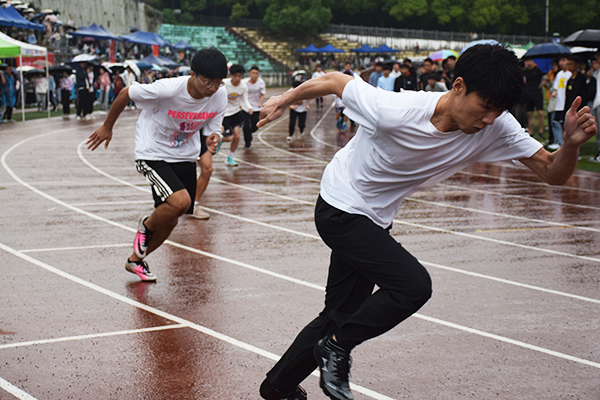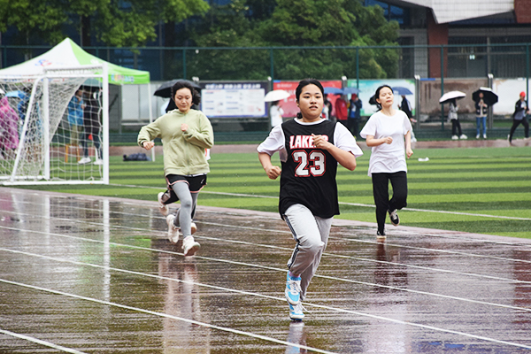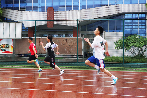 风雨无阻拼毅力,热情不灭彰风格。较量超常体力,拼搏无限耐力,健儿风采今日现,勇争佳绩创辉煌。