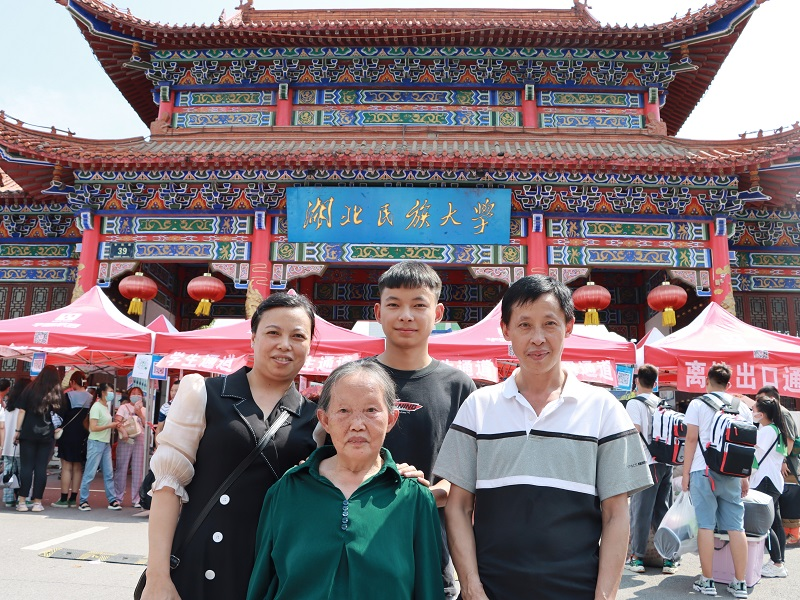 文学与传媒学院广播电视编导专业新生赖峻言和家人留影(通讯员 熊新/摄)
