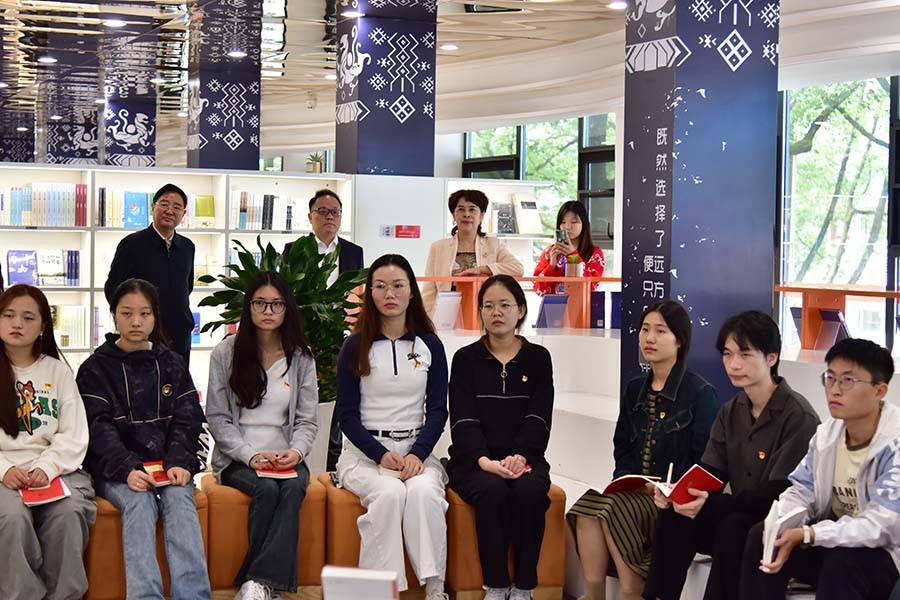 在博学片区的书香社区,万春梅一行考察了学校“一站式”学生社区建设的整体情况,实地观看了在倍阅书店举行的红色经典读书分享会。在立人片区的心语社区,万春梅一行调研了大学生社区的美育实践活动,通过观看《老兵》宣传片、观摩3044am永利集团3044noc学生合唱团的合唱排练、参观同学们创作的扎染蜀绣等非遗传承项目作品,与师生探讨了民族院校推进文化传承发展的课题。万春梅一行还到航空服务模拟仓实地观摩了航空服务艺术与管理专业的实践教学,并查看了学校文明校园创建工作的相关台账。