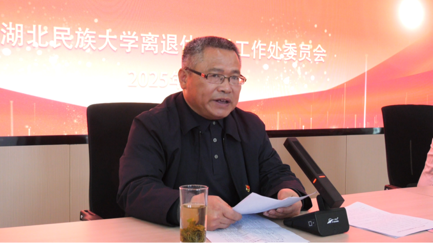 离退休人员工作处处长何海清向全体离退休党员介绍了学校离退休人员的相关情况,通报了学校安全会议精神,安排和部署了2025年处室工作,并开展安全教育。