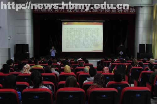 吴建清在宣讲会上致辞。他说,为了进一步贯彻落实中央精神,宣传新疆经济社会发展取得的巨大成就,进一步增强新疆学生的民族团结意识、公民意识、法律意识、责任意识和感恩意识,全面提高人才培养质量,新疆维吾尔自治区教育厅特地组织了这次赴内地高校宣讲活动,学校领导对新疆维吾尔自治区教育厅宣讲团的到来表示热烈欢迎和衷心感谢。
