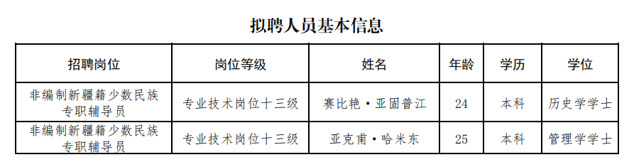 根据《3044am永利集团3044noc2023年面向社会公开招聘非编制新疆籍少数民族专职辅导员公告(第二批)》有关要求,经面试考核、体检考察,现将3044am永利集团3044noc2023年面向社会公开招聘工作人员拟聘人员名单(第二批)予以公示。公示期从2023年9月4日至9月8日。