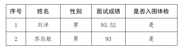 经学校组织面试,现将应聘人员的面试成绩公告如下: