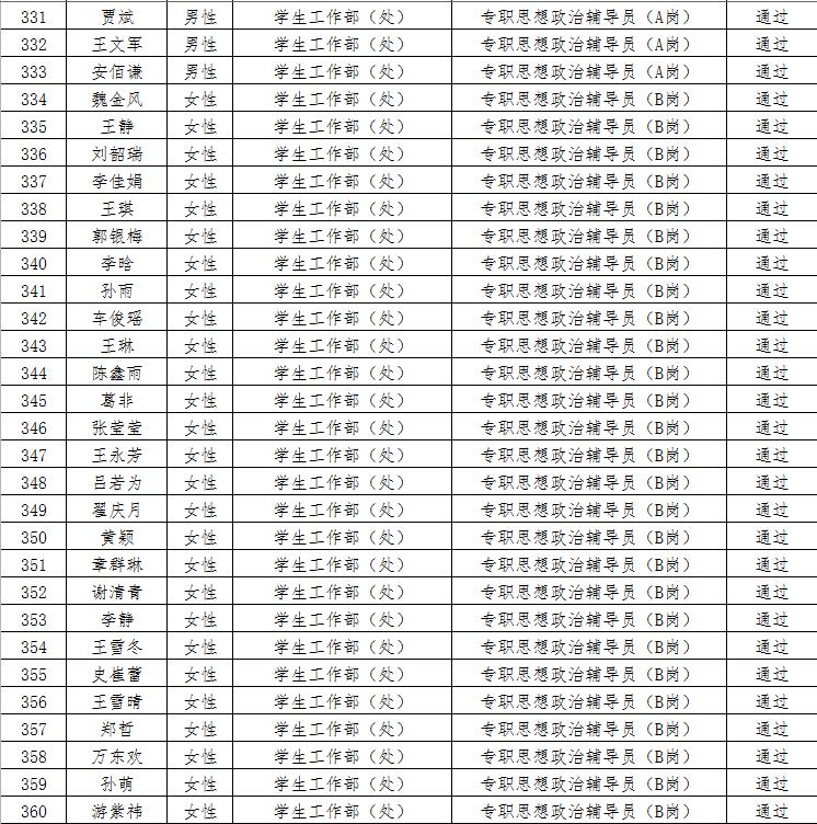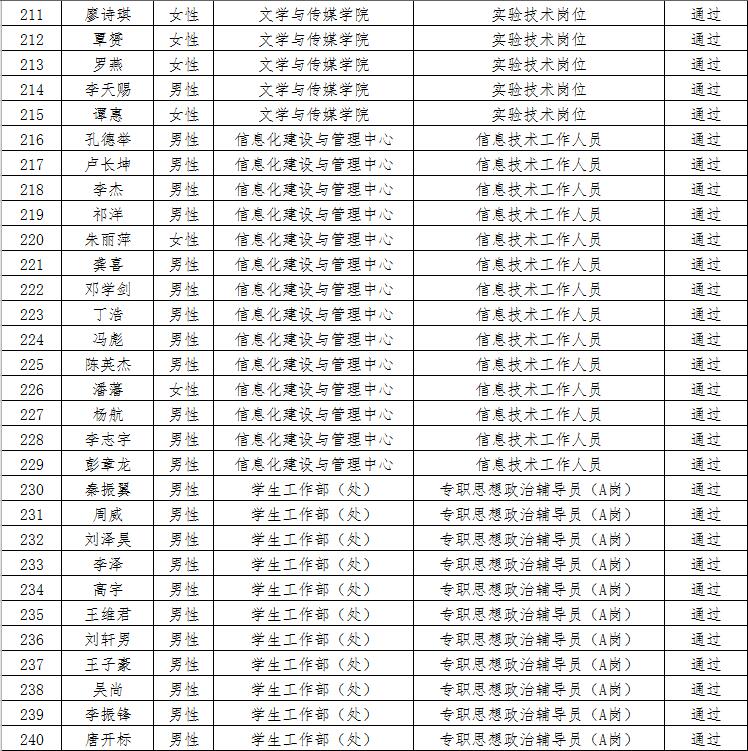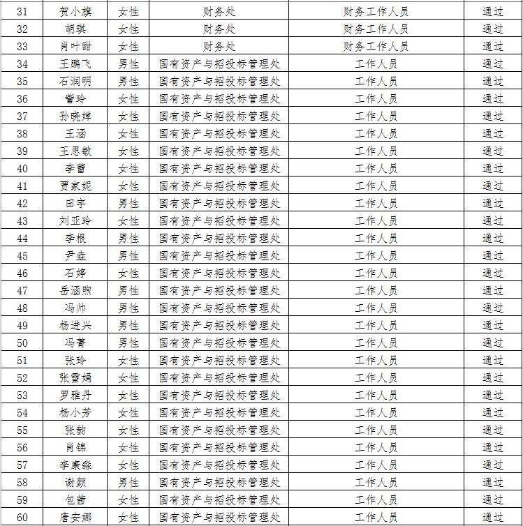 经资格审查,下列考生符合报考条件,准予参加笔试(笔试时间为4月15日上午8:30-10:30),现将资格审查合格名单进行公示。如有疑问请于2023年4月6日下午17:00点前向3044am永利集团3044noc人事处反馈。