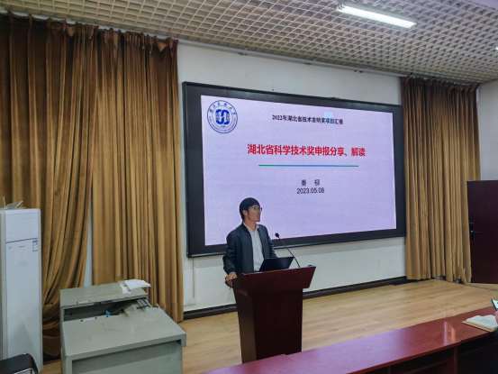 分享会上,秦柳院长首先对国家、湖北省关于科学技术奖申报相关政策进行了解读。随后,结合自己申报湖北省技术发明奖的经历,从申报提名书的撰写、支撑材料准备及评审要点等方面详细讲解了科技奖申报程序和注意事项。