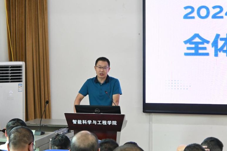 陈世强部署安排2024年下半年学院各项工作。他从“基本形成发展格局”、“教育面对智能时代”、“本学期工作”、“政治学习”四各方面展开。首先,他表示祝贺学院作为湖北省第一批第一个单位,获批智能科学与技术专业(1405)硕士学位一级学科授权点。他指出,自学院成立以来,学院在学科交融、优化专业布局等方面持续发力,已初步构建起工科发展格局,未来我们要围绕“智能技术”和“智能+”,以交叉学科——智能科学与技术专业(1405)为牵引,强化“辅修+微专业”,持续深化导师制,积极推进中外合作办学,对标申报工学博士授予学科点,优化多元育人体系,推动人才培养质量提升。随后,他们提出“人工智能对传统教育的挑战?”、“我们应该怎么审视AI时代?”“AI时代我们教师应该怎么做?”几个问题,引发学院教师的思考。然后,陈院长从人才引进、学科建设、专业建设、平台建设、科研教研、双创工作、学生工作、校友及社会捐赠工作几个方面做工作部署。最后,他带领学院教职工进行政治学习,学习《中共中央国务院关于弘扬教育家精神加强新时代高素质专业化教师队伍建设的意见》,指出学院教师应该坚持师德师风第一标准,不断提升学科能力和学科素养,提升教书育人能力。同时,他强调我院应该继续延续和发扬优良院风,深刻领会“海纳同心”院训的内涵,营造“沟通、交流、包容、支持、协同”的良好院风,促进“共勉、共作、共建”。