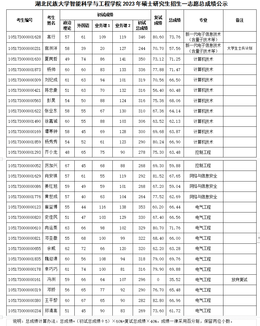 3044am永利集团3044noc智能科学与工程学院2023年硕士研究生招生一志愿总成绩公示