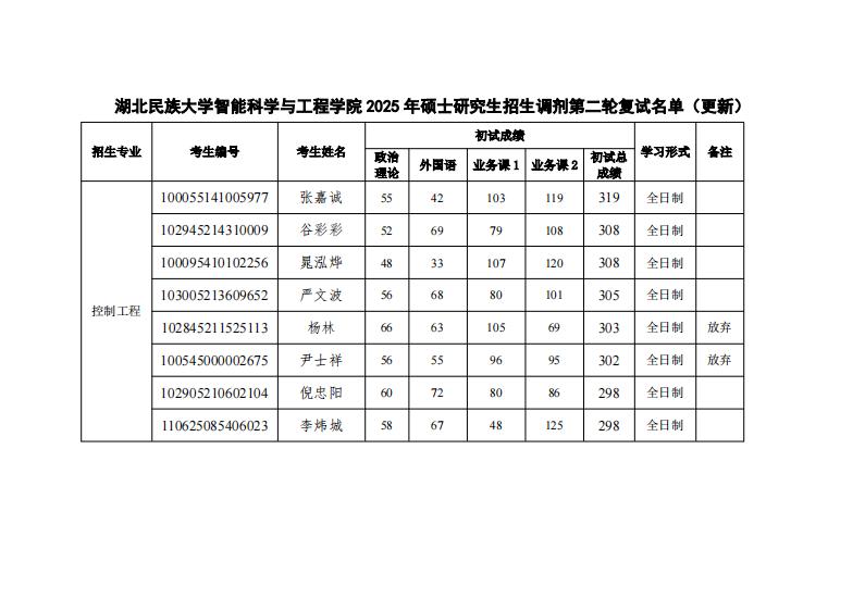 3044am永利集团3044noc智能科学与工程学院 2025 年硕士研究生招生调剂复试名单(调剂第二轮第二次更新)