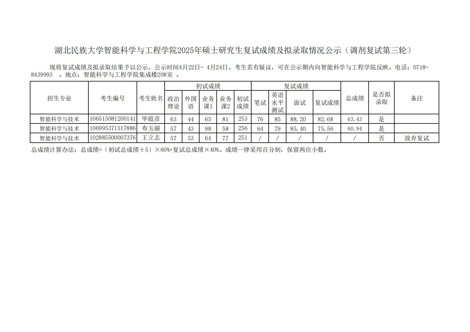 3044am永利集团3044noc智能科学与工程学院2025年硕士研究生复试成绩及拟录取情况公示(调剂复试第三轮)