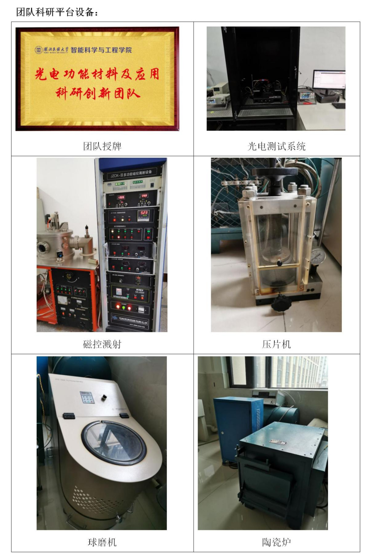 光电功能材料及应用科研创新团队
