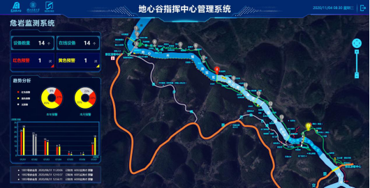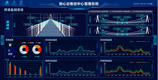 主要围绕景区安全监测、信息化管理、游客体验三个维度开展系列研究。在安全监测方面,对危岩、桥梁、河道水位及危险区域,通过线下自主研发的智能传感器布控、线上可视化数据分析预警,实现了高风险区域安全隐患提前防控。在智慧管理方面,汇聚了智慧办公、智慧票务、电子巡更、电子围栏等6个子系统助力景区管理升级,为日常运营信息化提供了支撑。在游客体验方面,从游客攻略、入园及畅游三个角度出发,通过一部手机游地心谷,提供了基于手机端的智慧气象、智慧厕所、智慧停车等便捷服务,增强了游客体验感。