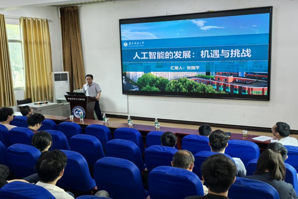 2025年5月13日上午,华中师范大学博士生导师张国平教授在学院213学术报告厅内开展"人工智能的发展:机遇与挑战"学术讲座。