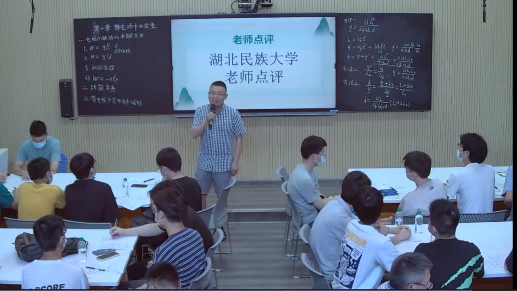 示范课后,恩施三中年级主任黄明老师主持了评课活动。参加见习的学生分小组展开了热烈的讨论,并积极发表意见。同学们一致认为陈善党老师基本功扎实,教学设计合理,教学思路清晰,重难点突出,教学效果好。尤其是电磁场中带电粒子运动的案例分析,有利于学生拓展举一反三,大家都深受教益。