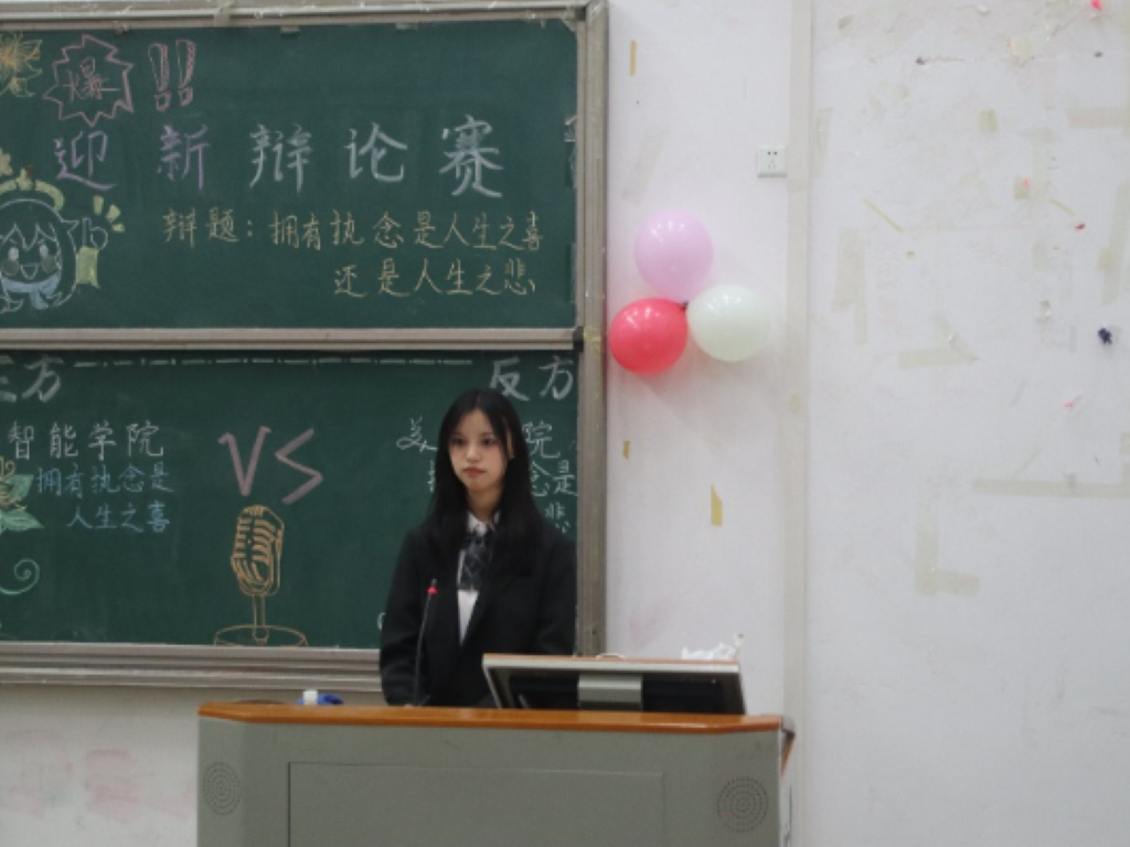 本网讯(记者 贺林江 付宇伟/文 胡国锐/图)10月22日晚上七点,我院与美术与设计学院两院辩论队组织了以“拥有执念是人生之喜还是悲”为论题的“迎新”辩论赛。比赛在5B404举行,两学院各四名辩手参加比赛。