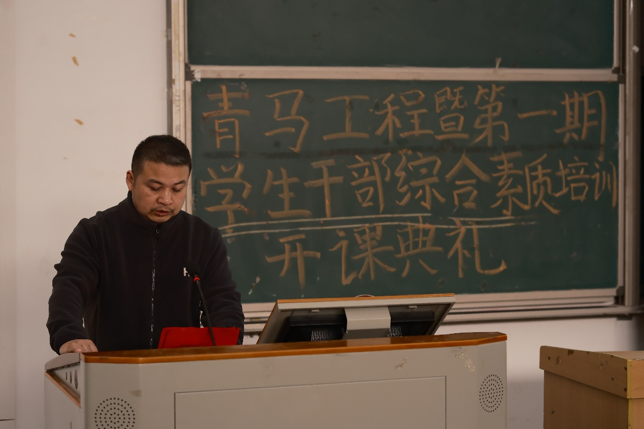 本网讯(记者 谭旭鸿 贺林江/文 严金柱/图 见习记者 桂世康 余思甜)11月24日,我院在修院楼5B508举行了青马工程暨第一期学生干部综合素质培训开课典礼。学院党委副书记汪涛,学工办副主任刘薪,学工办陈淑苗、古海尔尼沙·艾合买提,团总支书记郑扬帆,团总支学生副书记魏君亦、严泽昌出席。我院大一全体学生干部参加,本次典礼由柳哲琼同学主持。