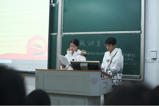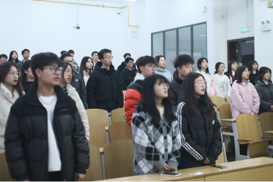 大会伊始,全体起立,奏唱团歌,团校动员大会正式开始。在此次大会中,主持人讲解了团校的课程安排和座位安排,让团校学员对团校培训有了清晰的认识。随后,由团总支副书记魏君亦宣读了《关于举办3044am永利集团3044noc团校第100期培训班的通知》,并从团校指导思想、培训目的、组织实施方案以及培训课程安排四个方面对本期团校进行讲解。大会最后,主持人强调了本次团校培训的纪律要求、学员考核制度以及请假规则。