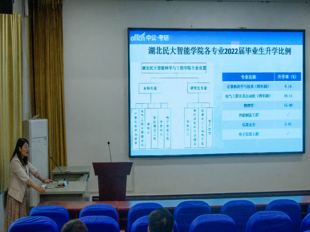 讲座伊始,刘老师以幽默风趣的提问开始了对考研的讲解,通过往届毕业生去向图表说明了就业的具体情况,进一步说明考研能为我们提供更多的就业选择。在询问现场学生专业情况后,她详细展示了我院各专业2022届毕业生升学比例,并鼓励大家认真考研。讲解过程中,刘老师询问学生们为什么要考研,大部分学生表示想继续深造,学习知识。刘老师则表示无论是因为外界压力,还是内在理想,只要有信念、肯努力,终会取得好的结果。最后,刘老师以计算机专业为例,详细讲解了适合选择什么样的院校以及怎样选择专业的问题,并为部分学生提出的问题给予解答。