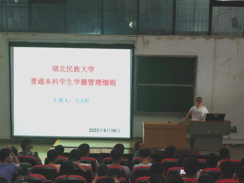 为提高新生对于永利官网学生管理细则的认知程度,9月18日晚,我院于修远楼5B509教室举办“3044am永利集团3044noc学生学籍管理管理细则”专题知识讲座。本次讲座由我院教学管理办公室马大柱主任主讲,我院2023级全体新生参加此次讲座。