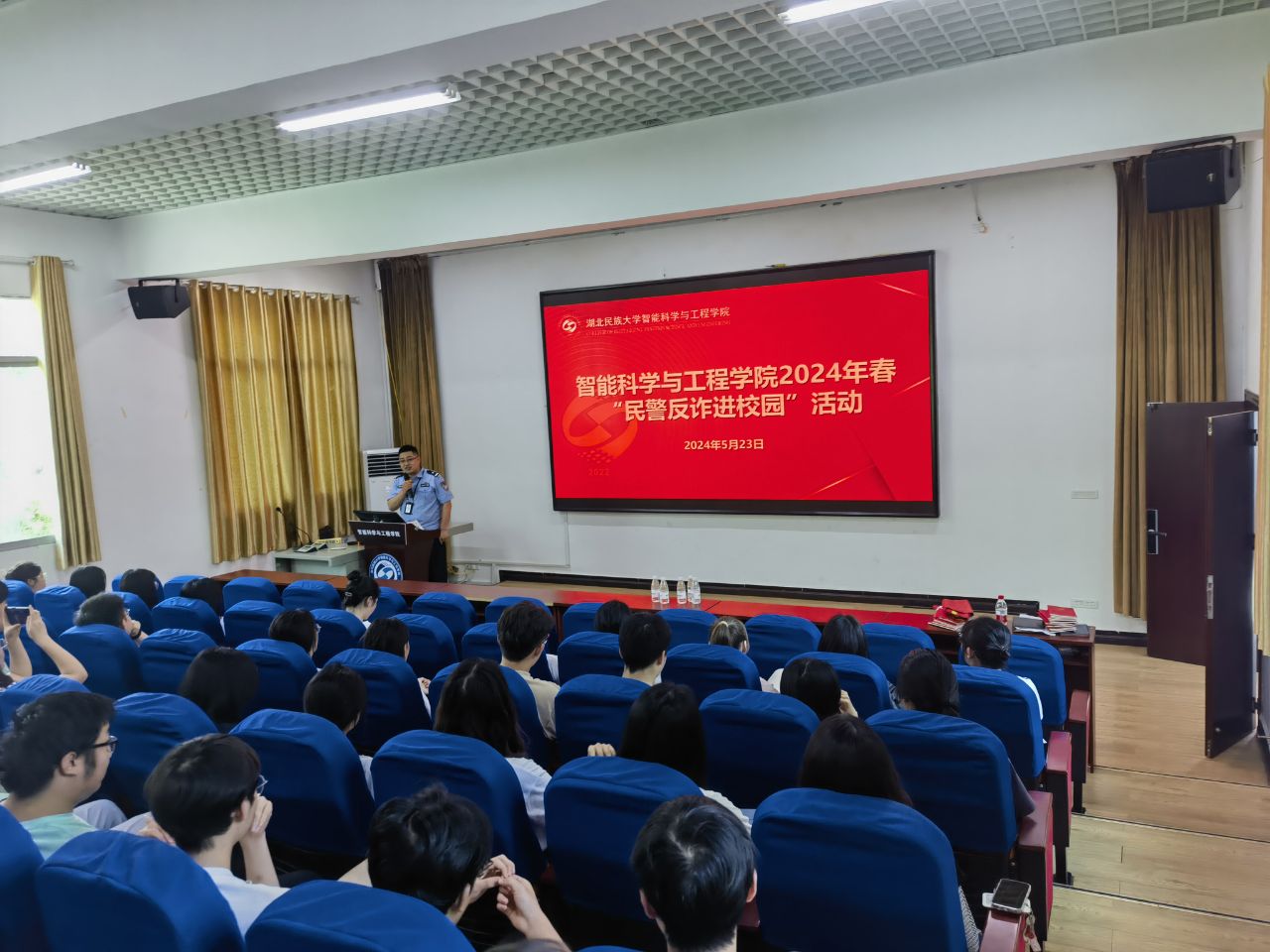 为加强校园电信诈骗防范工作,我院于5月23日下午在集成楼213会议室教室开展民警反诈进校园主题宣讲活动。本次讲座邀请到舞阳派出所杜钦辉警官主讲,辅导员陈淑苗、郑扬帆老师出席会议,2022级、2023级学生参与本次讲座。